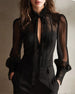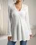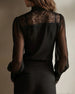 Lace Paneled Long-Sleeved V-Neck Blouse